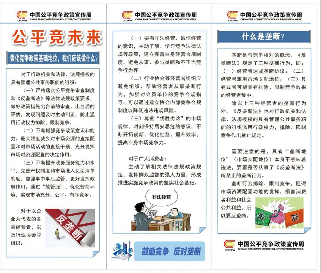 为贯彻落实党中央、国务院决策部署,大力培育和弘扬公平竞争文化,国务院反垄断反不正当竞争委员会办公室、市场监管总局会同有关部门和单位定于9月9日至13日举办2024年中国公平竞争政策宣传周活动。